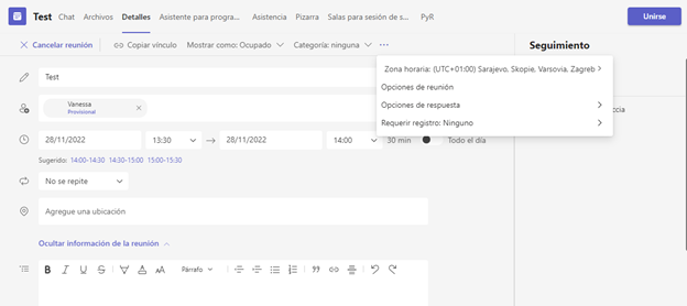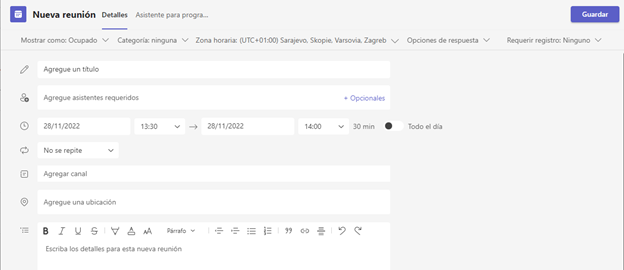 Será redirigido a una página donde podrá completar toda la información necesaria. Aquí también elegirá quién podrá presentar y quién será coorganizador de su reunión.